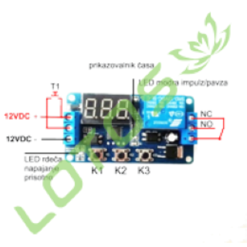 - napetost: DC 12V - breme: 30VDC 10A / 250VAC 10A - dimenzije: 6.5x3.5cm - odštevanje 0.1 s - 999s